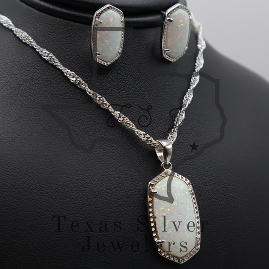 Large Opal Pendant and Earrings Set - 2 Colors